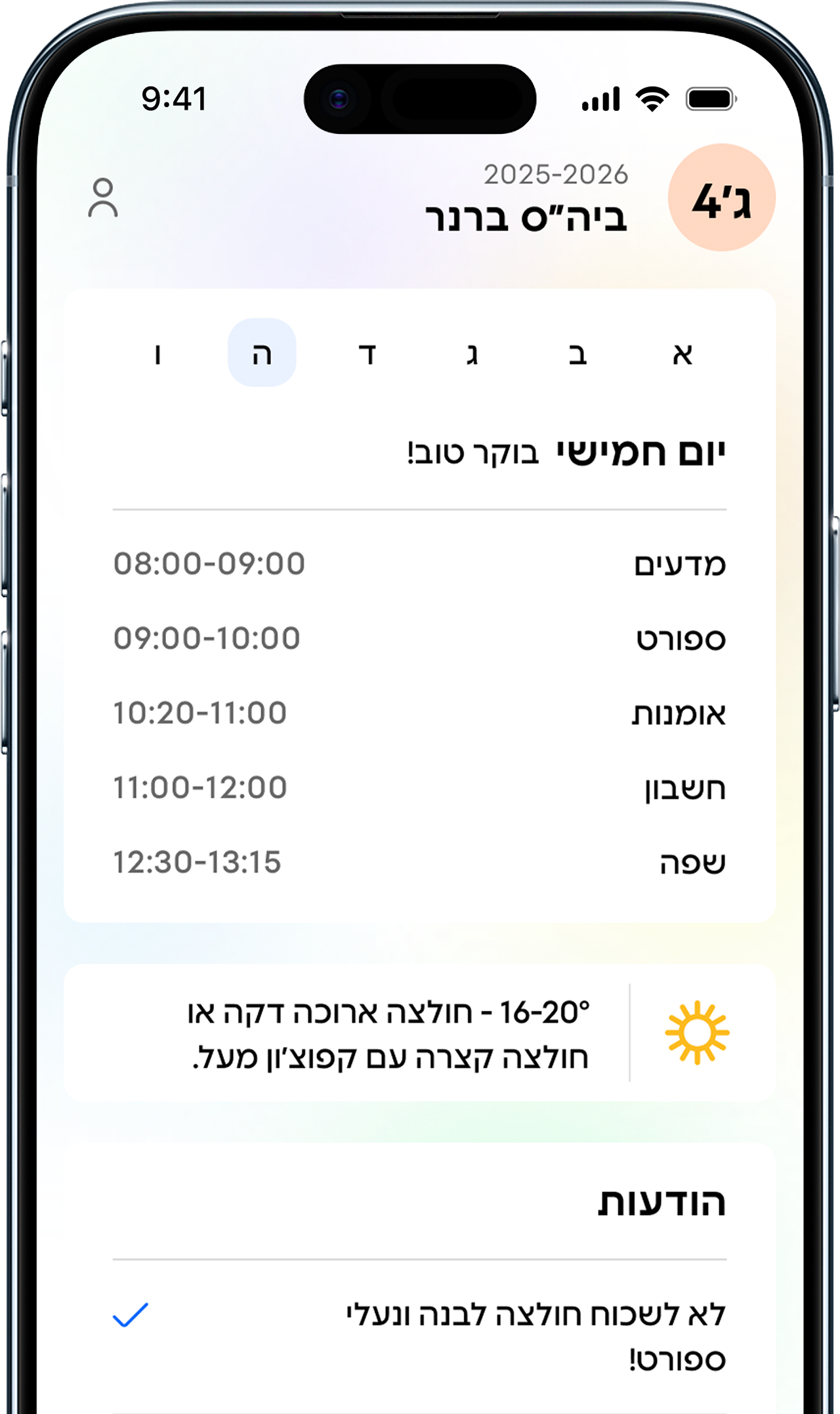 מעלים פעם אחת את כל המידע של הכיתה כמו מערכת שעות, הודעות, אירועים, טלפונים ועוד.