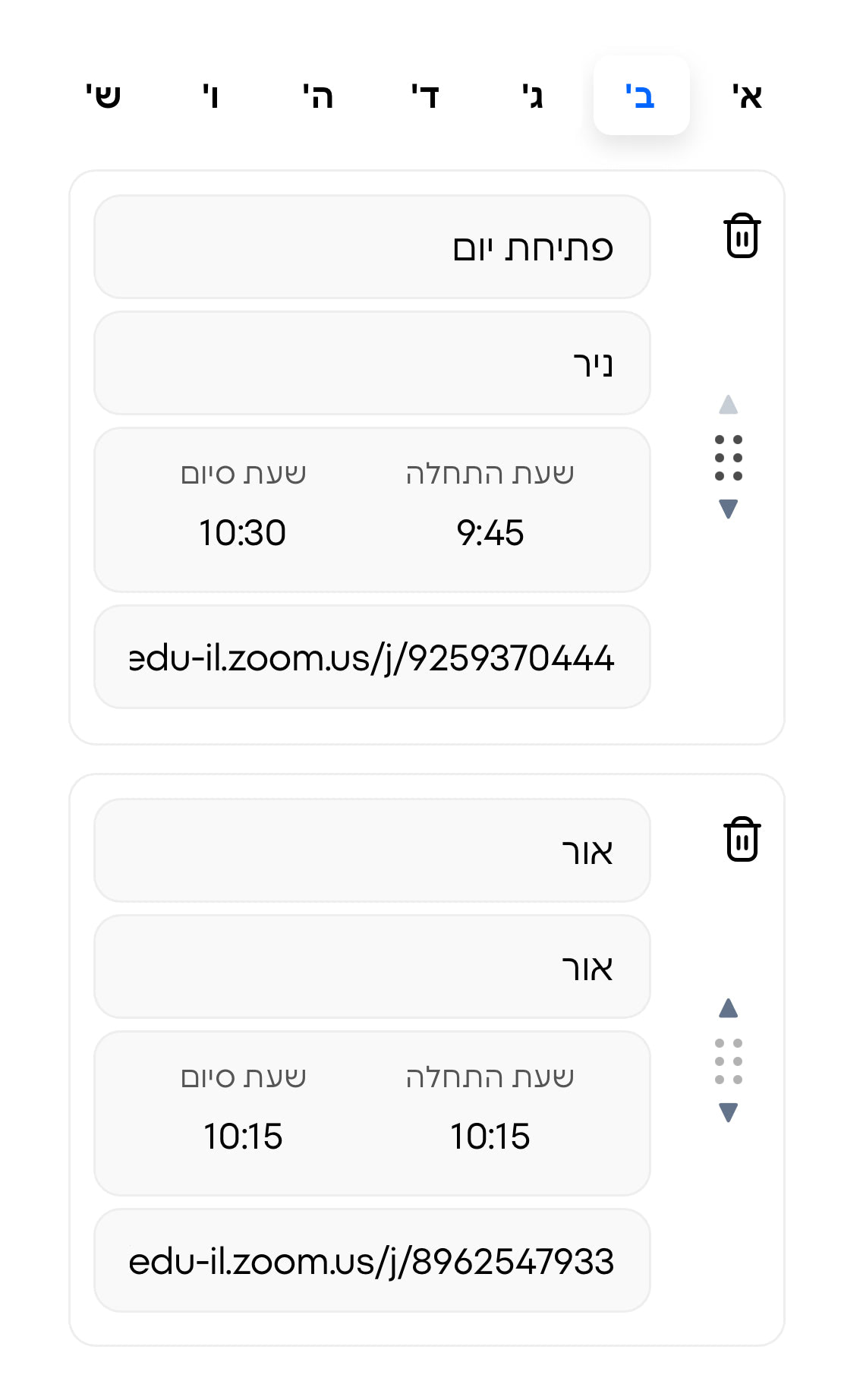 לינקים לזום בקליק: לאור המצב והלמידה מרחוק, הוספנו למערכת השעות אפשרות להדביק לינק ישיר ל-Zoom, Google Meet או כל פלטפורמה אחרת. ברגע שהכנסתם את הלינק – ההורים והילדים פשוט לוחצים על השיעור במערכת ומתחברים מיד.
