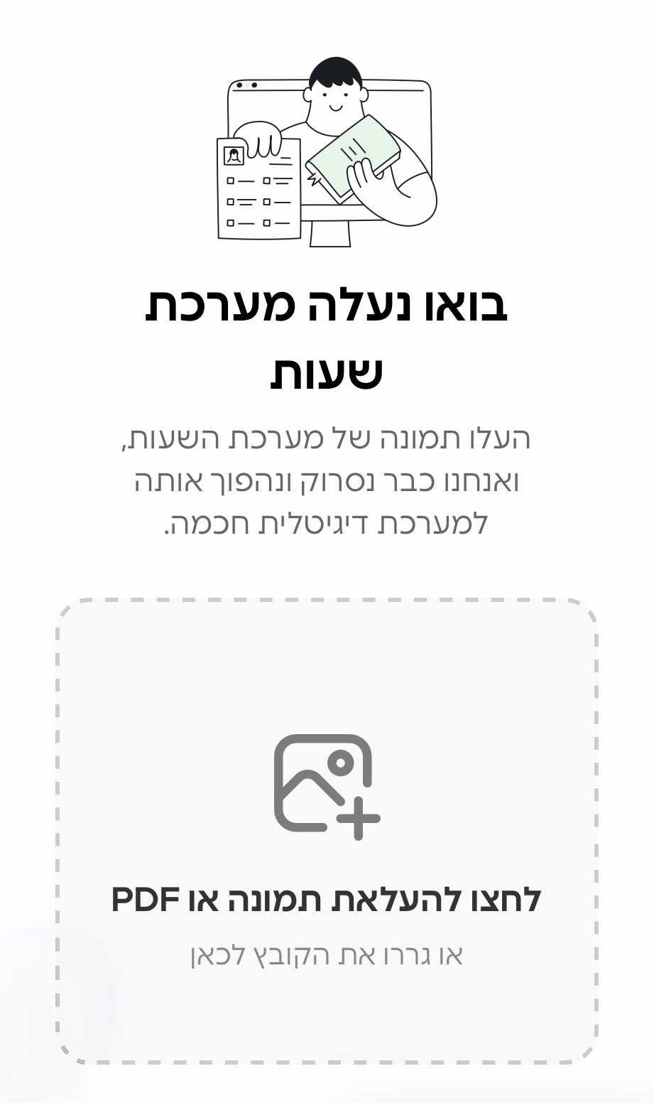 קיבלתם מערכת מבית הספר? פשוט תעלו את קובץ התמונה או ה-PDF שלה למערכת. סקוליסט יידע לסרוק את הקובץ, לפענח אותו, ולעדכן את המערכת הכיתתית באופן אוטומטי! קליק אחד וחסכתם הקלדות (לוחצים על העיפרון -> לחצו להעלאת קובץ / תמונה -> שמירת מערכת)