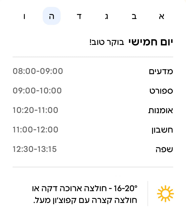 הרעיון פשוט: הוועד (או כל הורה שלוקח על עצמו את העדכון) מכניס פעם ביום את כל מה שקורה, ולכולנו יש עמוד אחד, יפה ונגיש מכל טלפון, עם כל מה שצריך לדעת.